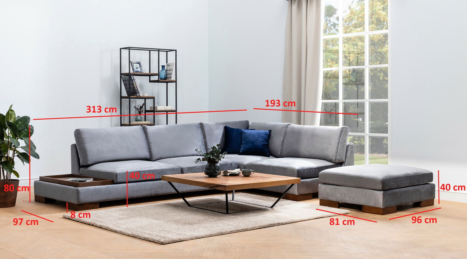 Colțar cu Taburetee Tullia (gri închis) (D)