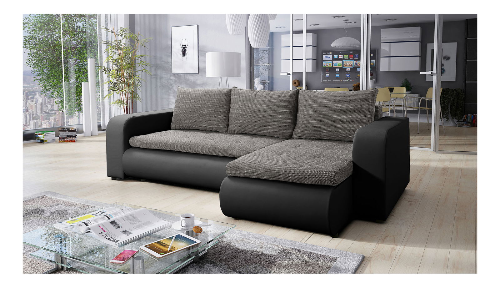 Colțar extensibil Bistran (negru + gri) (D)