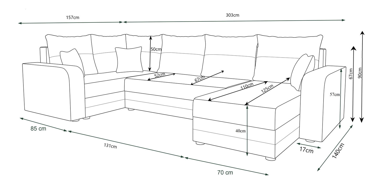 Colțar în formă de U Harmony Long (Gri + Negru) (D)