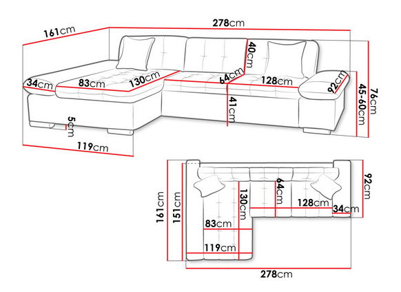 - Structura robustă și picioarele discrete din metal conferă stabilitate și un plus de rafinament acestei canapele colțar.