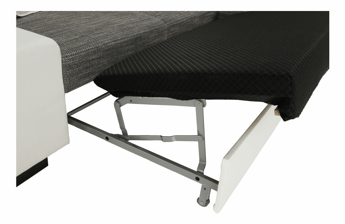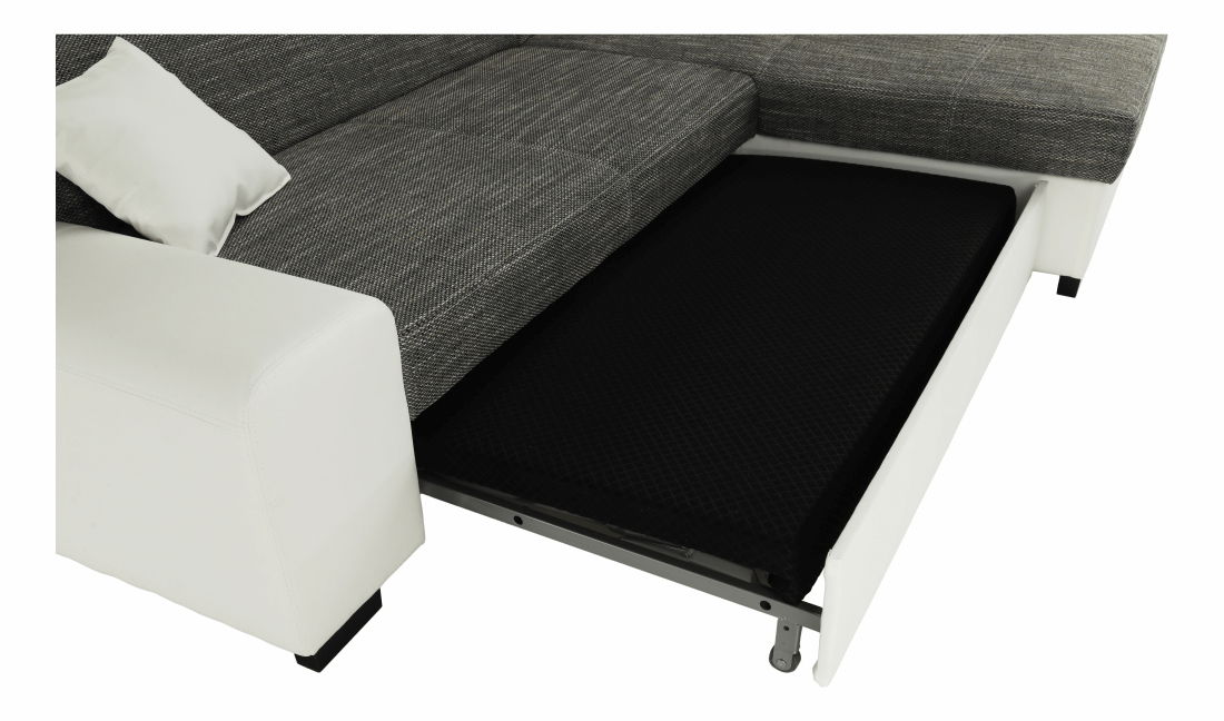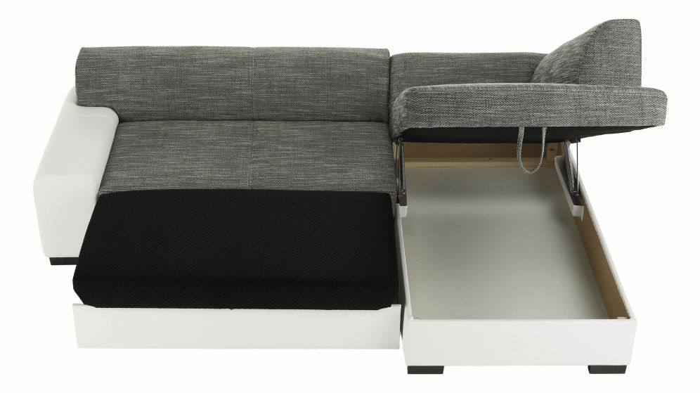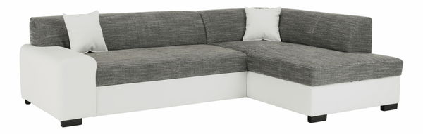 Colțar cu orientare pe dreapta cu cotiere confortabile și două perne decorative. Tapițat cu piele ecologocă și stofă. Este extensibil cu spațiu de dormit 135x195 cm și spațiu de depozitare.