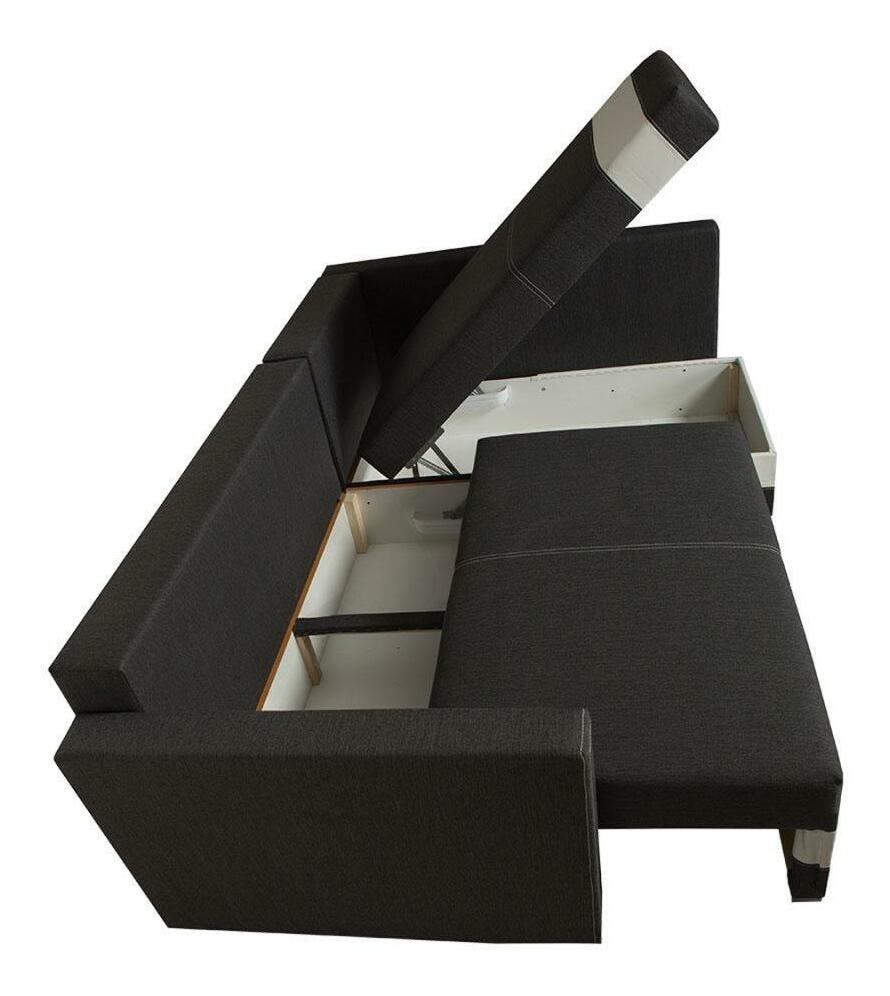 Funcția de extensie conferă un plus de versatilitate, transformând rapid zona de ședere într-un spațiu suplimentar de dormit, ideal pentru oaspeți. Materialele atent selectate care acoperă această canapea colțar: