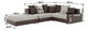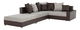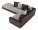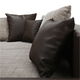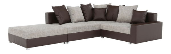 Canapea de colț Petrana cu un taburet practic. Este tapițată cu piele ecologică în combinație cu stofă. Spațiul de dormit se formează prin deplasarea taburetului. Confortul în timpul șederii este asigurat de pernele folosite ca sprijin pentru spate.