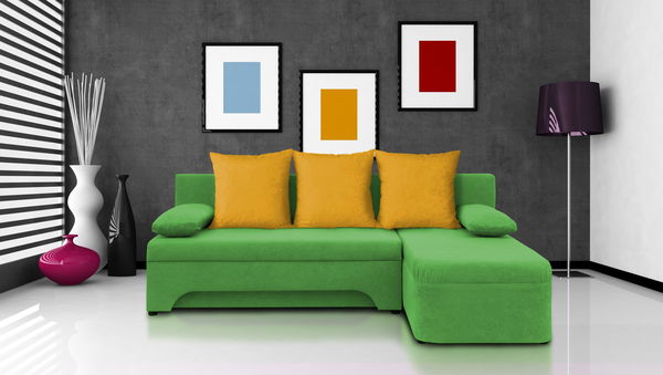 Colțar Sally Verde + perne galbene (2 spații de depozitare, spumă)