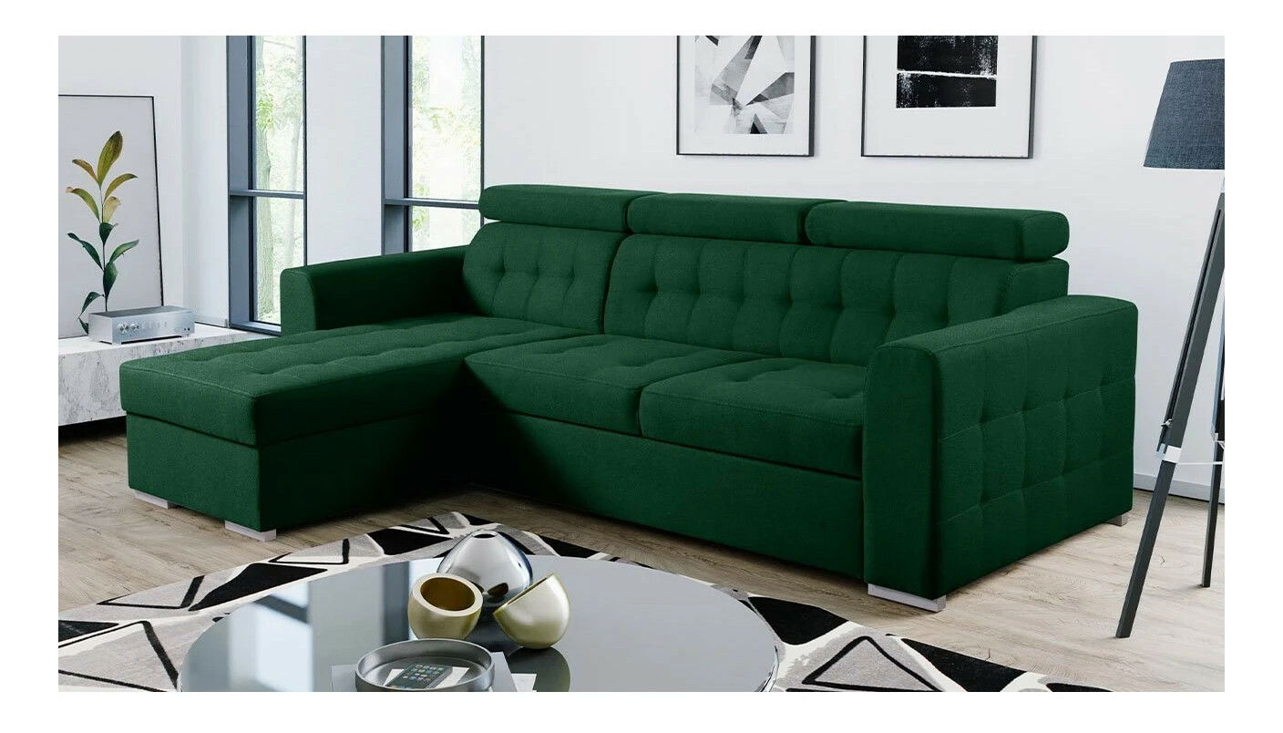 O canapea de colț este alegerea ideală pentru cei care caută confort și stil. Canapeaua de colț Somkera cu tetiere oferă relaxare confortabilă după o zi aglomerată. Tetiera reglabilă vă permite să alegeți setarea optimă pentru o poziție confortabilă. Spuma foarte elastică utilizată la fabricarea canapelei se adaptează, de asemenea, la forma corpului și susține o poziție sănătoasă a coloanei vertebrale. Dimensiuni: lungime: 265 cm lățime: 175 cm înălțime: 87-101 cm dimensiuni ale zonei desfăcute: 215 x 125 cm Partea scaunului: stânga, Construcție: cadru din lemn + plăci aglomerate brute, spumă poliuretanică, arcuri ondulate, tetieră reglabilă, spațiu de depozitare, spătar tapițat cu țesătură - independent. Perioada de garanție: 24 luni