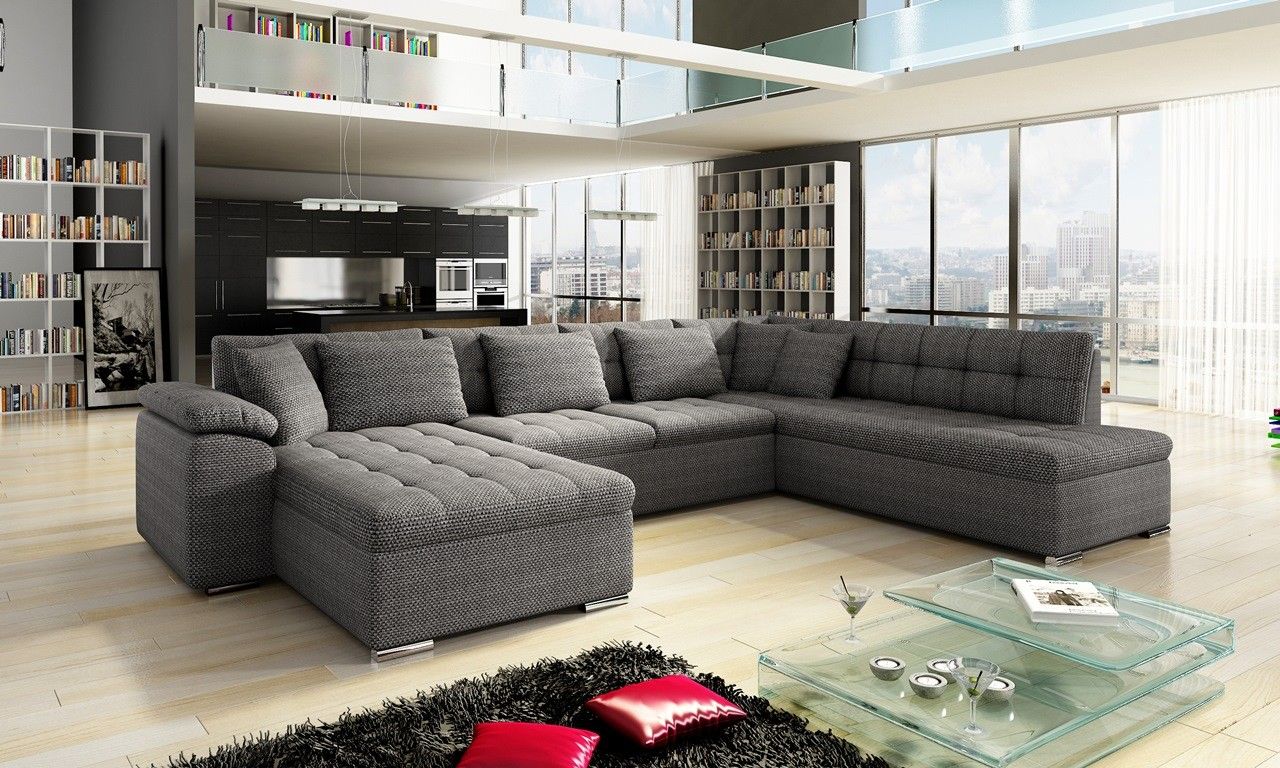 Cadru din lemn + pal; Spumă poliuretanică; Arc ondulat; Funcție de extindere; Cu spațiu de depozitare; Picioarele din față din plastic (crom) / picioarele din spate din plastic (negre); Spătarul este sub forma de perne; Pernele au fermoar; Pernele sunt incluse în preț; Partea din spate a canapelei este tapițată.