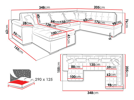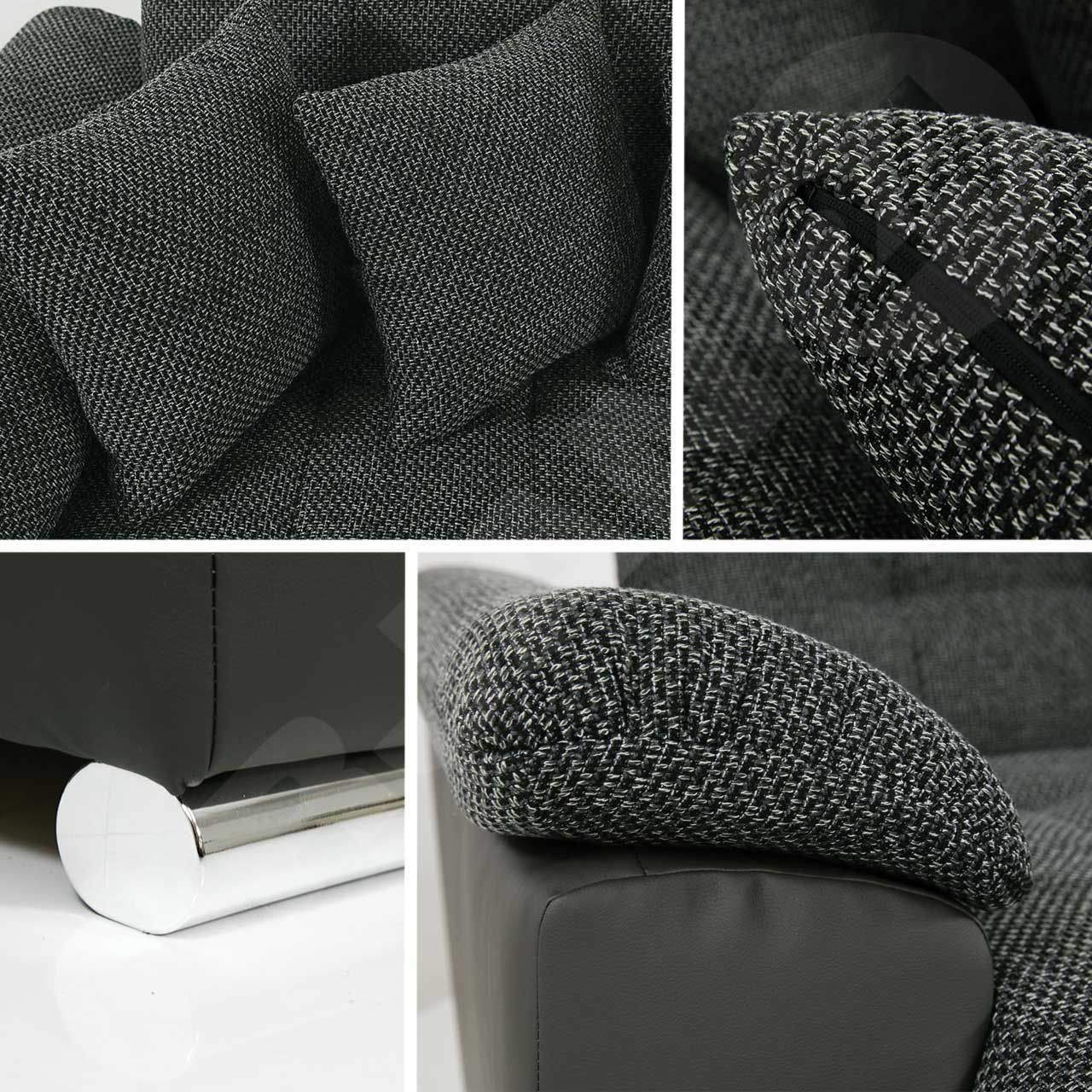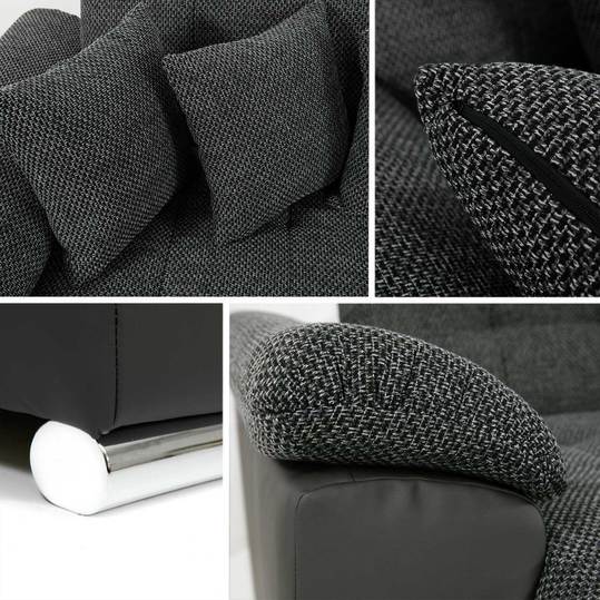 Cadru din lemn + pal; Spumă poliuretanică; Arc ondulat; Funcție de extindere; Cu spațiu de depozitare; Picioarele din față din plastic (crom) / picioarele din spate din plastic (negre); Spătarul este sub forma de perne; Pernele au fermoar; Pernele sunt incluse în preț; Partea din spate a canapelei este tapițată.
