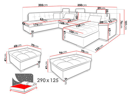 lungime: 147 cm, lățime: 85 cm, înălțime: 23 cm