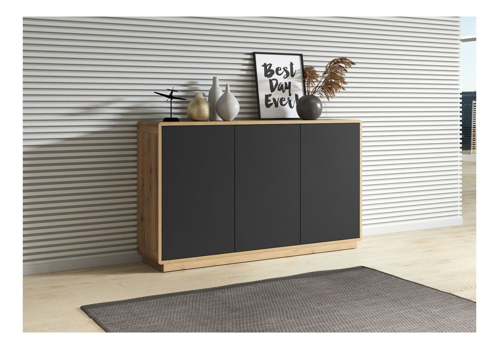 Comodă Albert Typ 43 (Stejar taurus + negru mat)