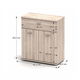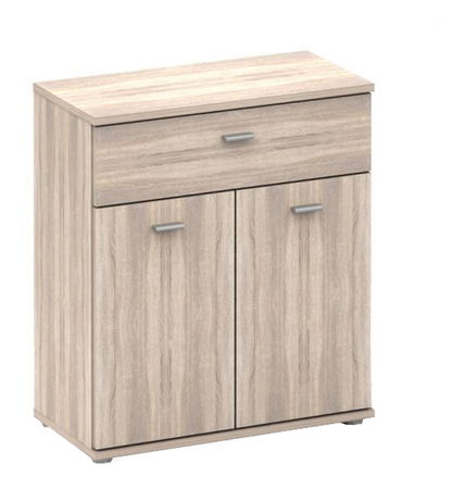 Comodă universală cu două uși și un sertar, care poate fi plasată în mai multe tipuri de camere și poate să dețină mai multe roluri de stocare. Materialul este din PAL de lemn laminat cu structură internă mai groasă, în versiunea color de stejar sonoma, iar în interior în spatele ușilor se află un singur raft.