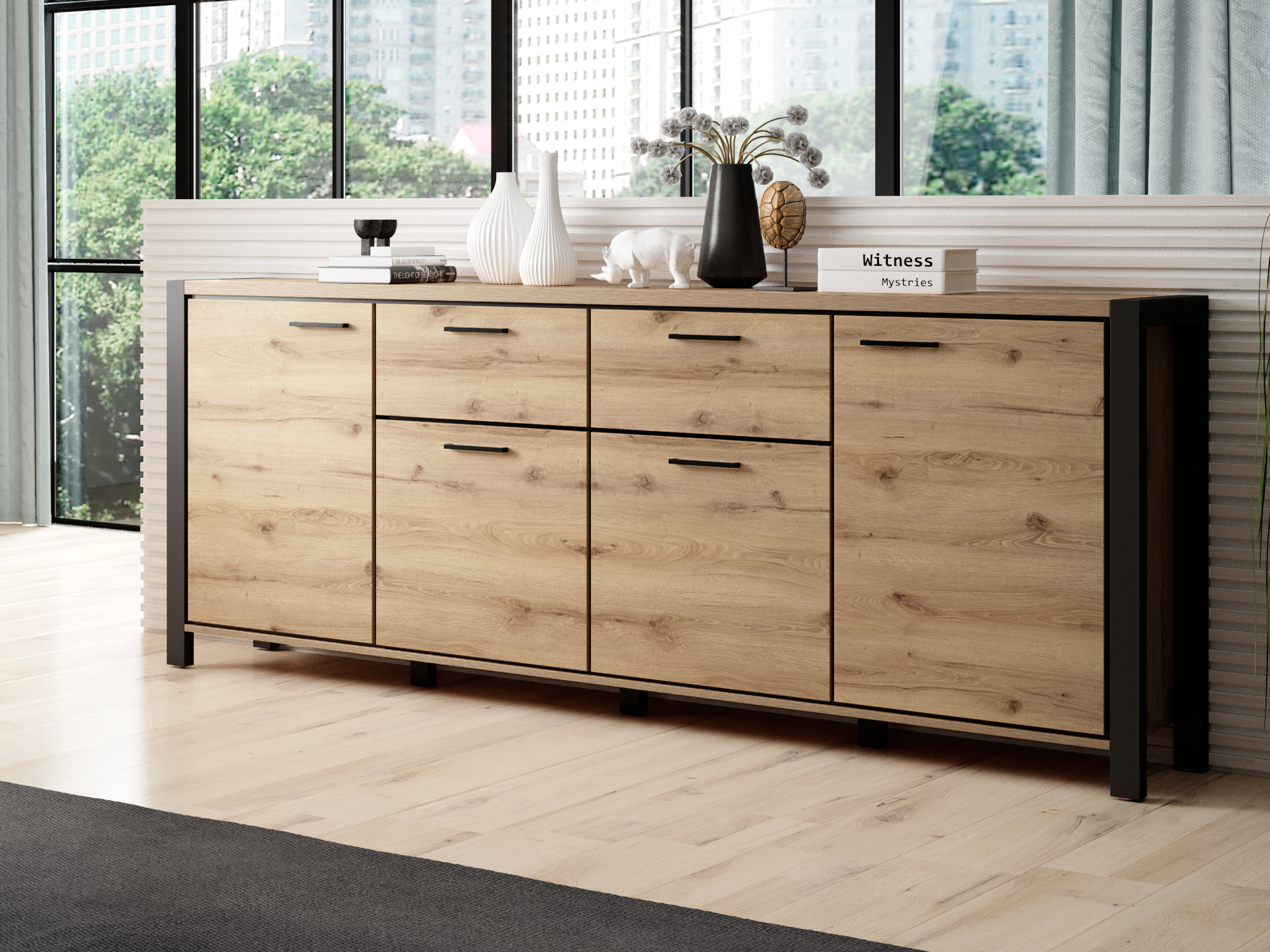Comodă Armin Typ 25 (stejar taurus + negru mat)