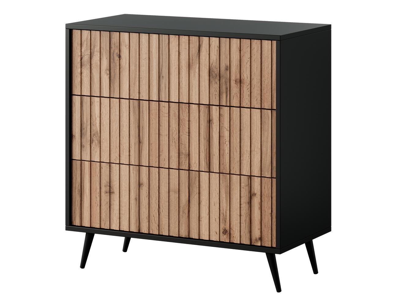 Comoda universală cu trei sertare. Poate fi plasată în camere diferite și poate deține varioase roluri de stocare. Materialul este PAL melaminat, versiunea color Negru.
