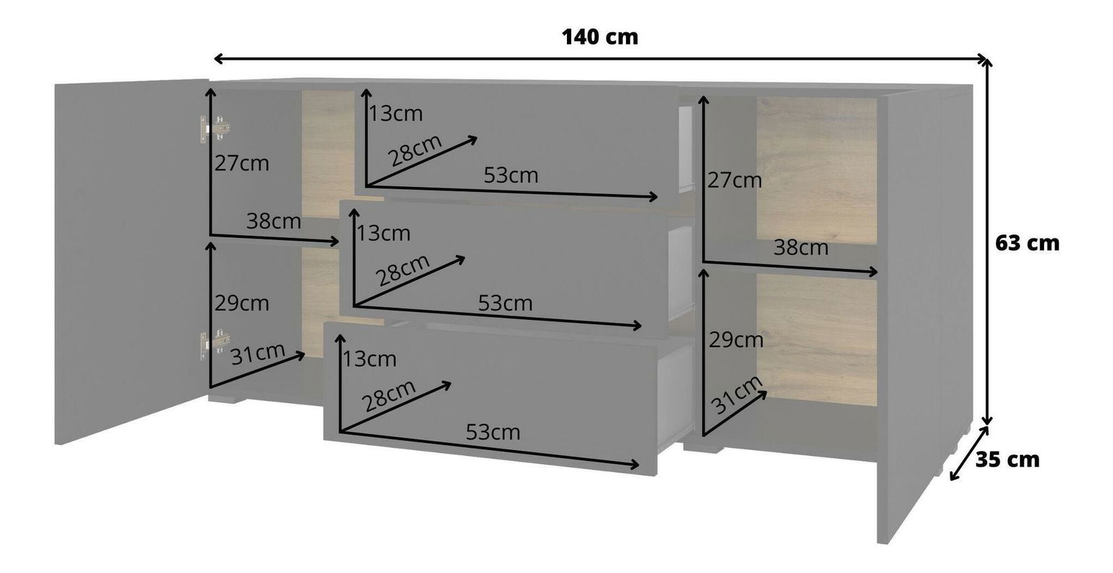 Comodă Avernic Typ 26 (onyx negru + stejar wotan)