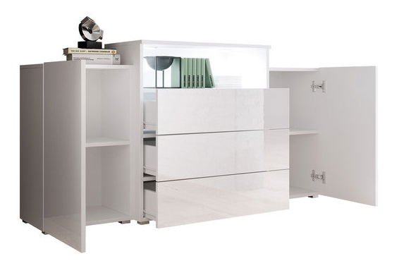Comodă combinată Freya III (Alb + Stejar wotan + Alb lucios) (fără iluminat)