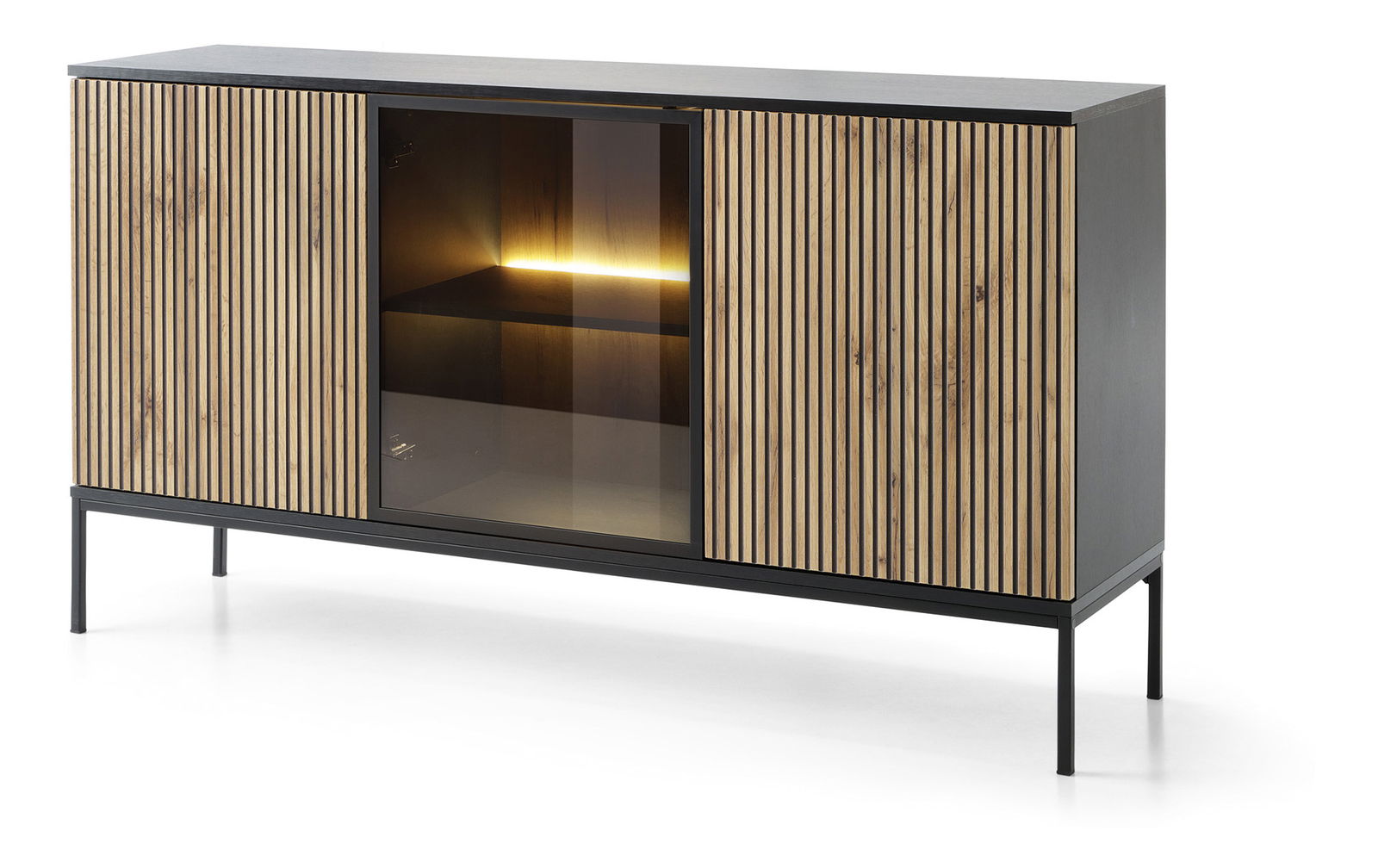 Comodă combinată Silvano K154 (Negru + Stejar wotan) (cu iluminat LED)