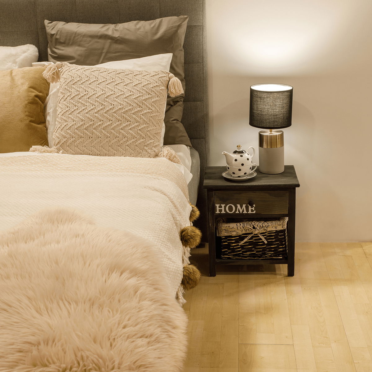 Această comodă va fi apreciată în special de iubitorii stilului rustic tradițional și de materiale naturale. Poate fi plasată atât în hol precum și camere de zi sau dormitoare ca și noptieră. Are un sertar și un coși de răchită pentru depozitarea obiectelor mici. Versiunea color de grimaroniui