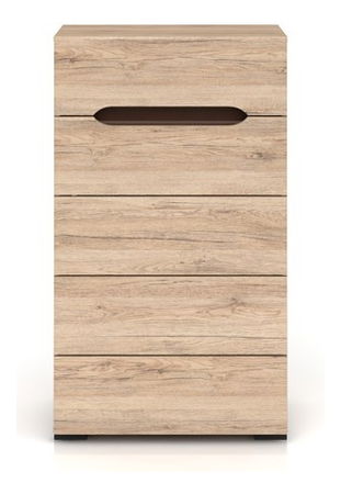 Comodă spațioasă KOM5S / 60 care conține 5 sertare. Primele două sertare au un mâner pe partea din față, iar cele 3 sertare inferioare au mânerele vizibile pe părțile laterale ale părții din față a sertarului.