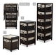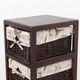 Comoda în stilul rustic frumos, care este de asemenea un ajutor potrivit. În patru coșuri de răchita decorate cu panglici puteți depozita diverse lucruri mici. Va fi un accesoriu în vestibule, dormitoare sau în baie. Versiunea color a comodei este maro închis și bej.