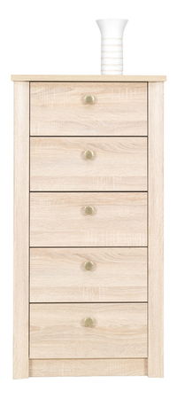 AfișeazăComodă cu sertare înguste pe care o puteți folosi ca accesoriu lângă celelalte elemente sau ca și o comodă în spațiile mai mici. Cinci sertare vă vor ajuta să aveți lucrurile aranjate bine. Placa superioară a comodei poate sluji eventual la așezarea unei flori de cameră și a obiectelor decorative.