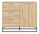 AfișeazăComodă cu design netradițional care oferă spațiu de depozitare pentru accesoriile preferate. În partea stângă se află trei sertare pe șine cu role și un dulap cu 1 ușă, care are un raft în interior. Comoda are balamale cu închidere silențioasă și cu reglare a forței de frânare.