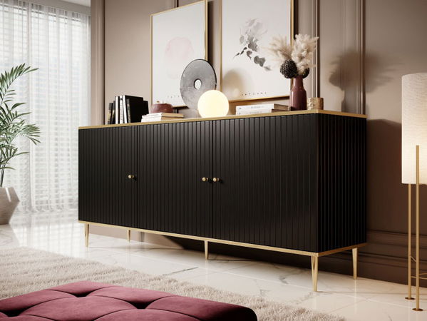 Comodă Ginette (Negru + Lemn natural + Auriu)