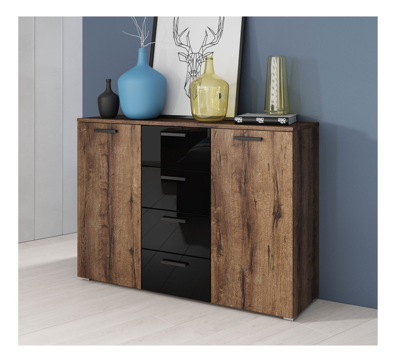 Comodă Glynda Typ 26 (Stejar monastery + negru lucios)