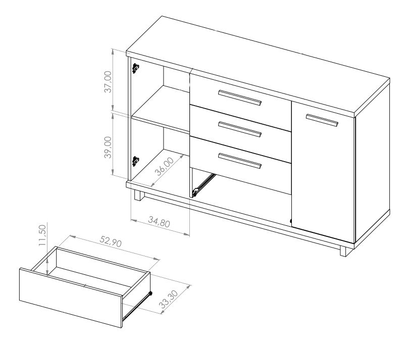Comodă Indi K2D4SZ (Stejar artisan + Negru mat + Stejar artisan)