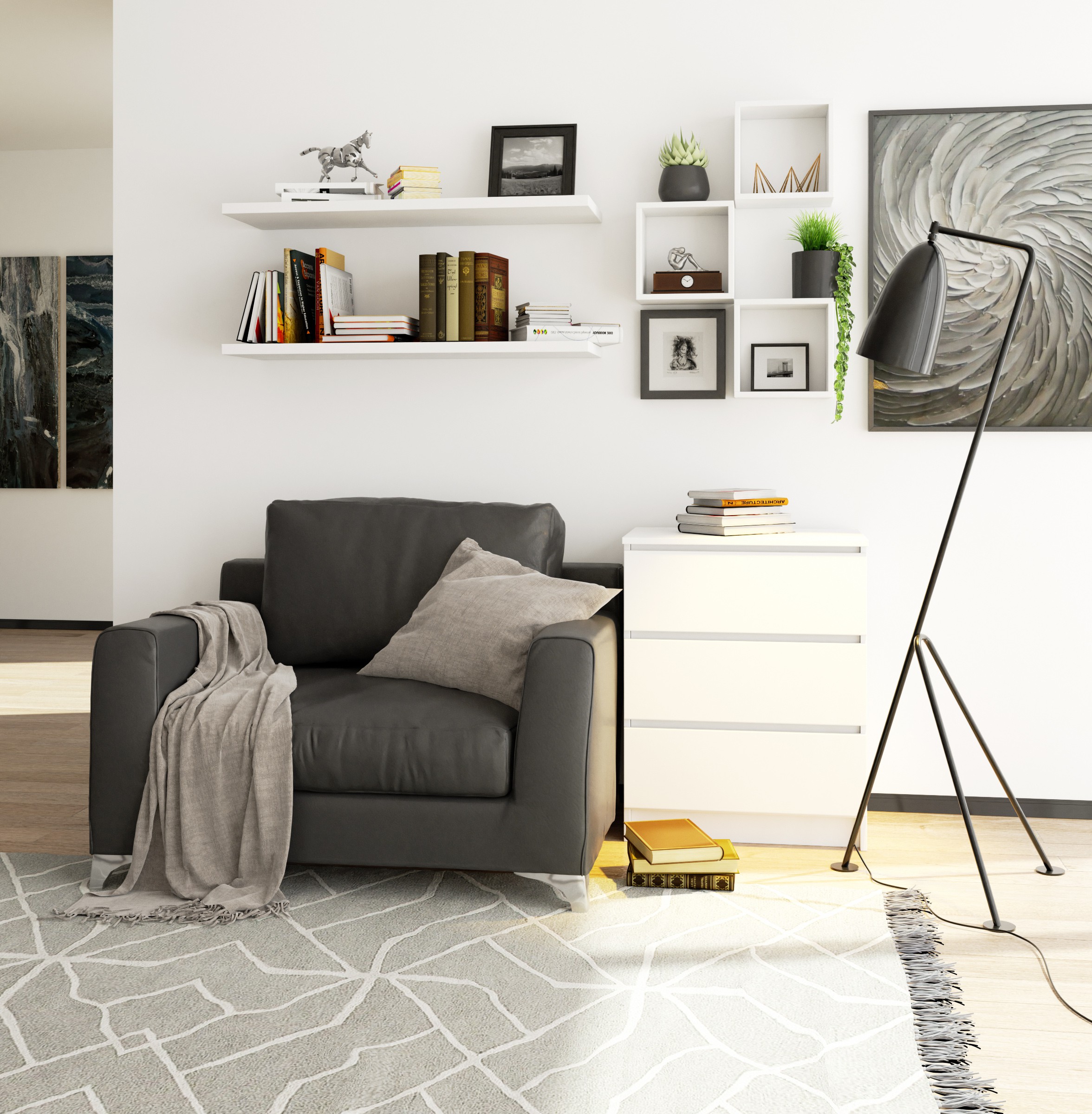 - Suprafețe netede și nuanța albă care luminează și creează o atmosferă aerisită și primitoare.