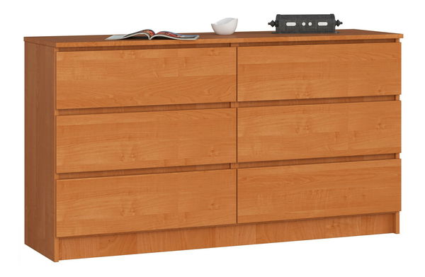 Comoda Keanu, realizată din arin cu un finisaj cald, este o opțiune potrivită pentru cei care își doresc un corp de mobilier practic și estetic. Dispune de șase sertare spațioase, oferind multiple opțiuni de depozitare, fiind adaptabilă atât pentru dormitor, cât și pentru hol sau living.