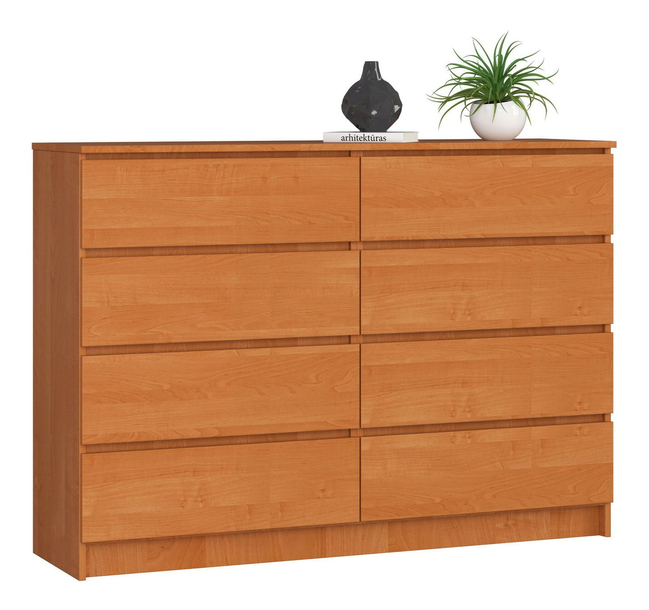Comoda Keanu III, realizată din arin de calitate superioară, combină funcționalitatea și designul modern, adaptându-se oricărui stil de amenajare interioră. Cu dimensiuni generoase de 138 cm lățime, 99 cm înălțime și 40 cm adâncime, această piesă de mobilier oferă un spațiu amplu de depozitare, ideal pentru organizarea eficientă a hainelor, accesoriilor sau altor obiecte esențiale. Finisajul în nuanța caldă de arin adaugă naturalețe și căldură încăperii, completând armonios decorurile clasice, minimaliste sau scandinave.