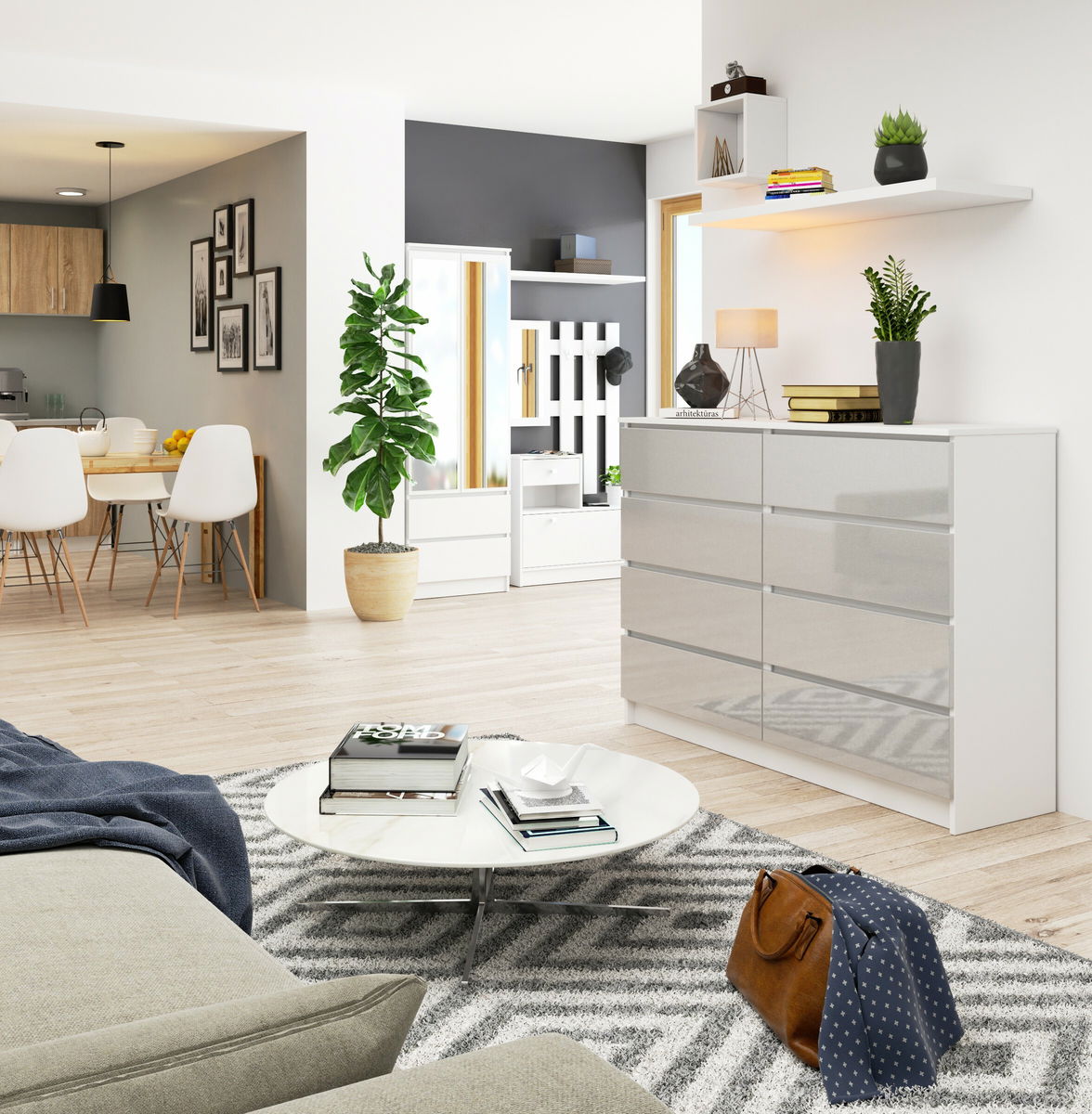 Comodă Keanu III (Metalic lucios)