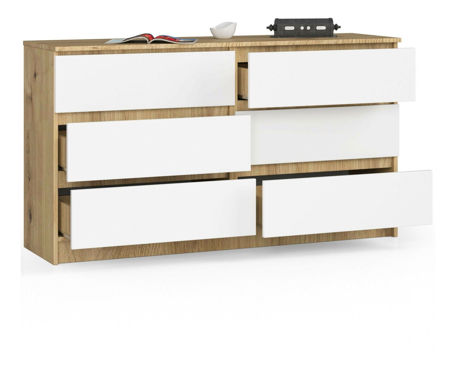Comoda Keanu, realizată din stejar artisan combinat cu alb, este soluția ideală pentru organizarea eficientă a spațiului în diverse încăperi. Cu dimensiuni generoase de 138 cm lățime, 77 cm înălțime și 40 cm adâncime, oferă multiple sertare spațioase ce permit păstrarea ordonată a hainelor, obiectelor personale sau a accesoriilor de uz zilnic.