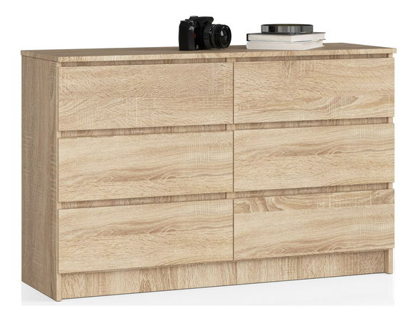 Comoda Keanu în finisaj stejar sonoma combină funcționalitatea cu designul modern, oferind un spațiu generos de depozitare cu dimensiunile de 77 cm înălțime, 138 cm lățime și 40 cm adâncime. Această piesă de mobilier este ideală pentru sufragerie, dormitor sau hol, ajutând la organizarea eficientă a obiectelor personale.