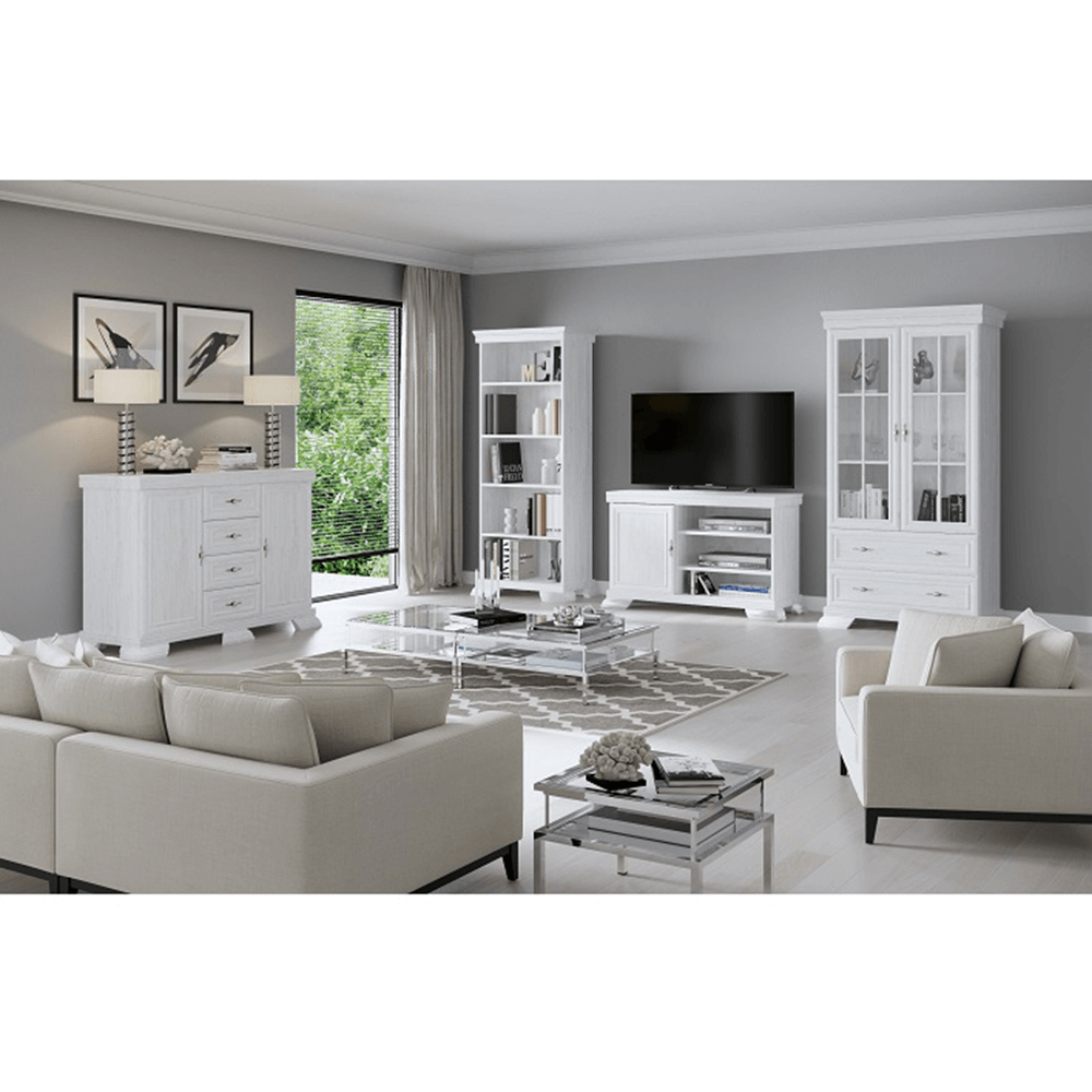 Colecția de mobilier Kraz va fi cu siguranță alegerea potrivită pentru cei cărora le place stilul tradițional. Are un design mai masiv, elegant, cu plinte decorative și mânere metalice. La alegere multe pises, de la vitrine la comode, dulapuri, mese PC sau mese TV.