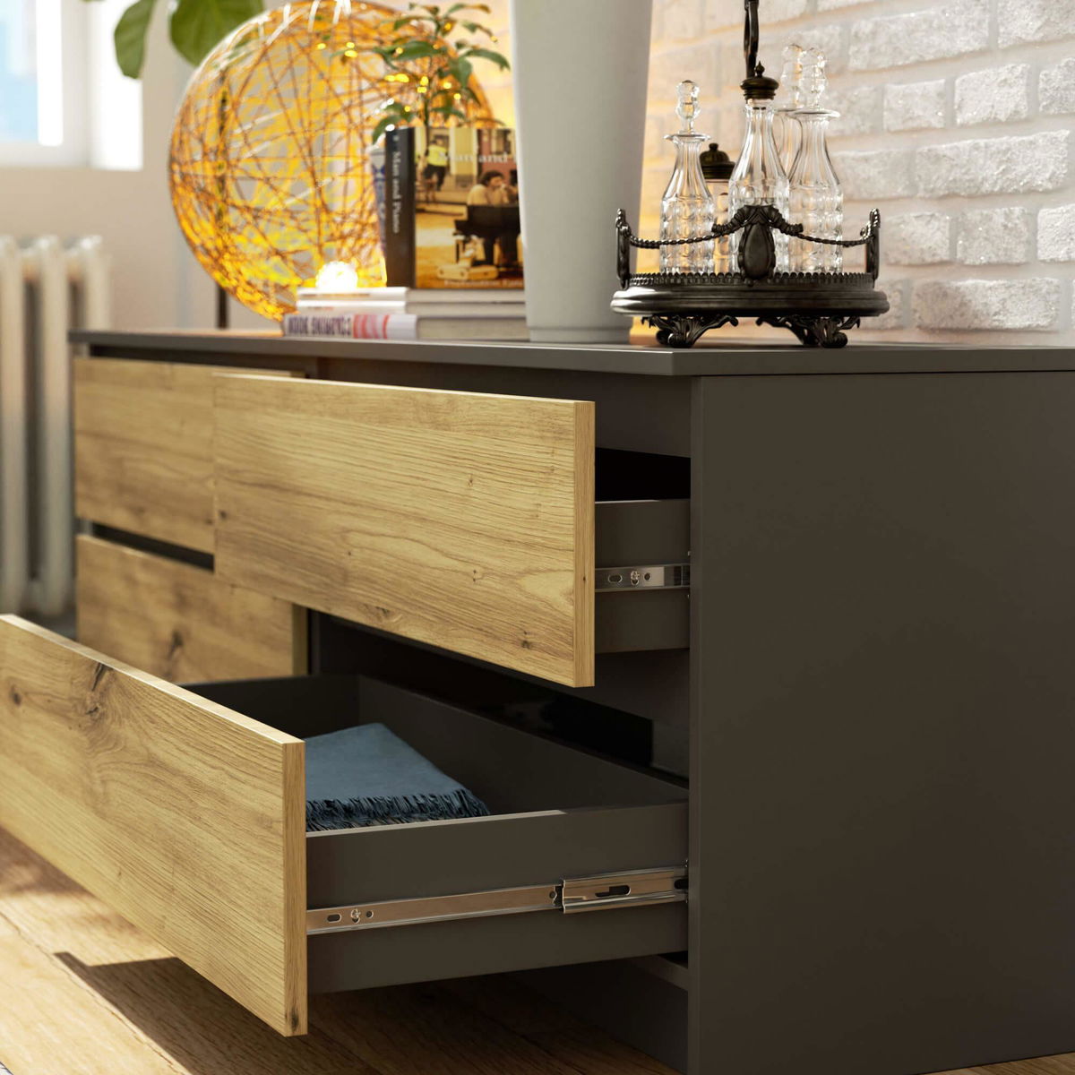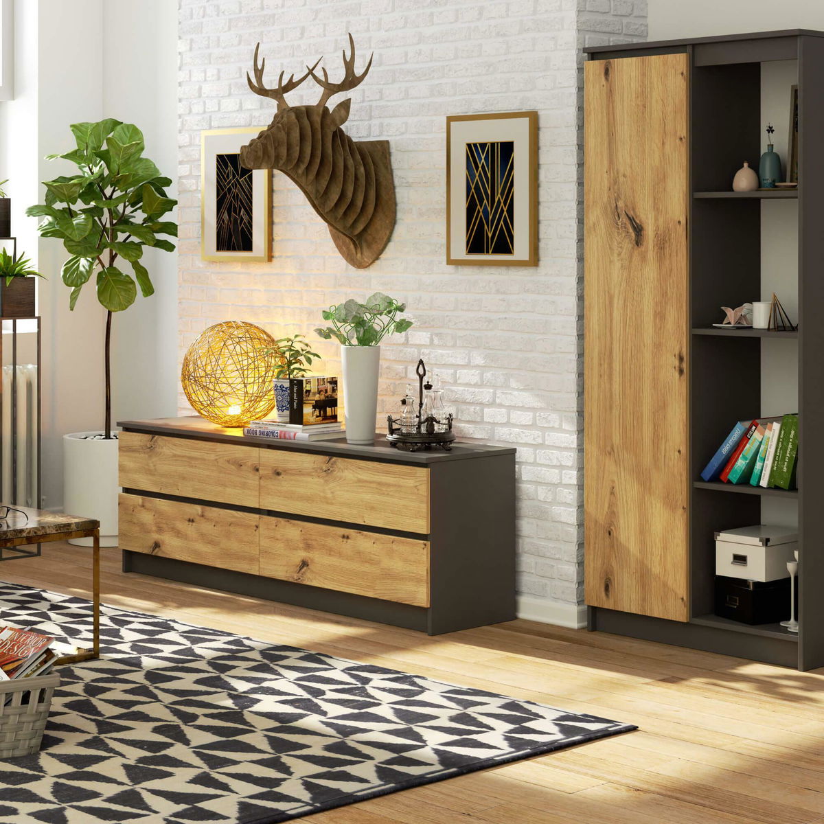 Comodă Kurtinaitis 4SZ (grafit gri + Stejar artisan)
