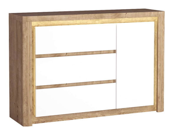 Comodă Livia 15 (Stejar ribbeck + Alb lucios)