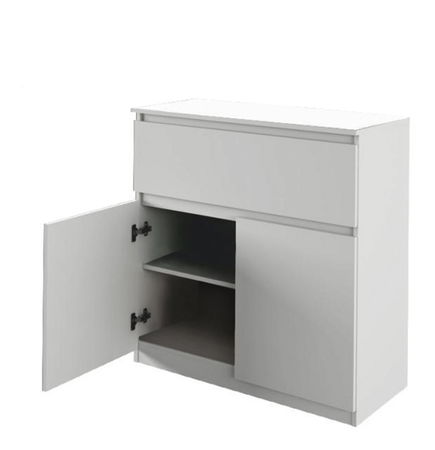 Comodă modernă care poate fi plasată în orice cameră. Echipată cu 2 uși, un sistem de deschidere rapidă și simplă și un singur sertar. Materialul este PAL melaminat, realizat din furnir Stejar Sonoma.