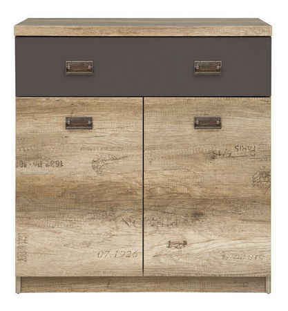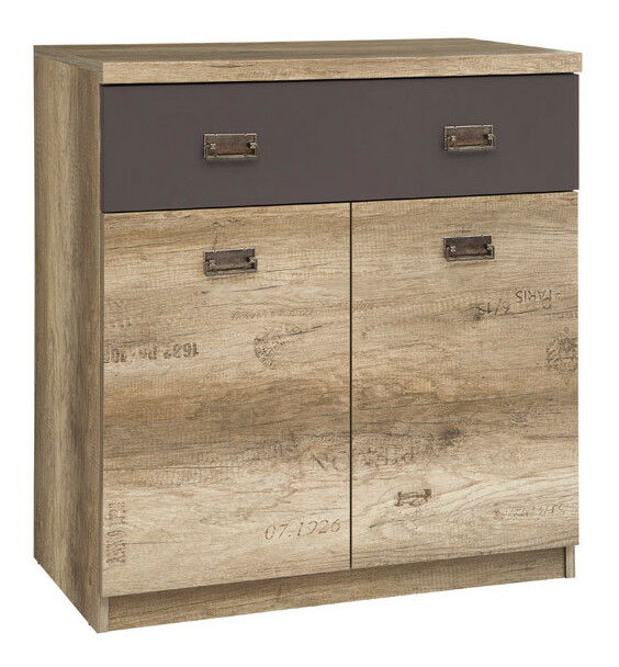 AfișeazăComodă practică KOM2D1S care este formată din 1 sertar pe șine cu role și 2 uși cu 1 raft. Corpul are culori combinate modern, stejar canyon monument + wolfram gri în combinație cu culorile stejar canyon monument cu imprimare 3D + wolfram gri, pe ușile noptierei și tăblia sertarelor. Acestea creează cele mai moderne trenduri din ziua de astăzi.