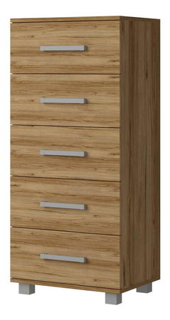 Mobilierul atractiv și elegant, care va umple interiorul dvs. într-un mod unic. Elementele din această gamă de modele, datorită designului modern și a culorii de lemn, vor face din apartamentul dvs. un loc unic. Mobilierul este fabricat din pal laminat care este protejat cu o margine de ABS de 2 mm. Grosimea plăcii corpului este de 22 de mm și a fronturilor de 16 mm. La vitrine este folosită placa MDF argintie. La paturi, în loc de grilaj lamelar este folosită o placă.