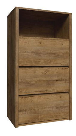 Comodă practică Modestus în stil tradițional, cu trei sertare și un raft. Designul simplu și curat al comodei este perfect potrivit pentru camerele de zi, birouri sau dormitoare. Versiunea color a comodei este de stejar închis lefkas.