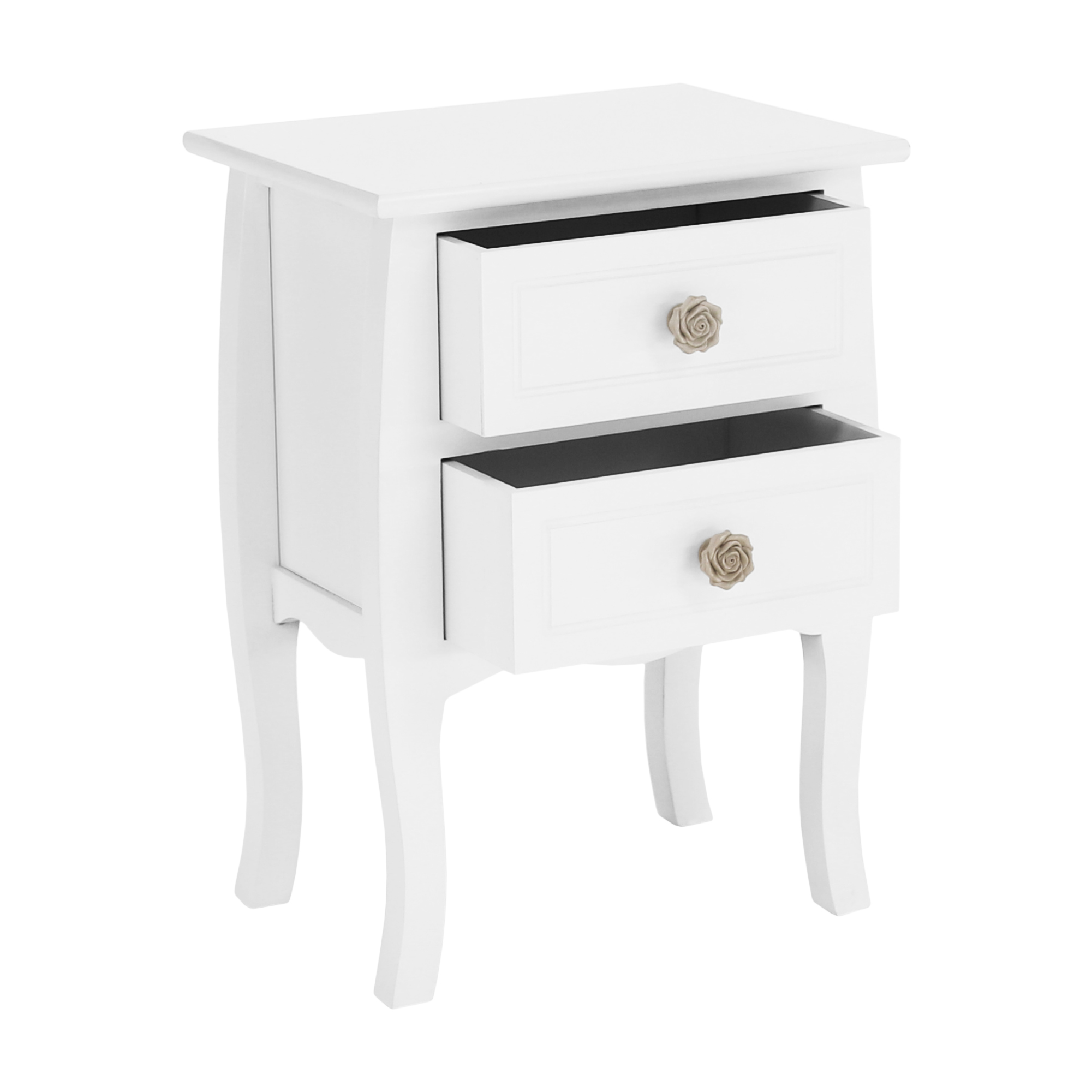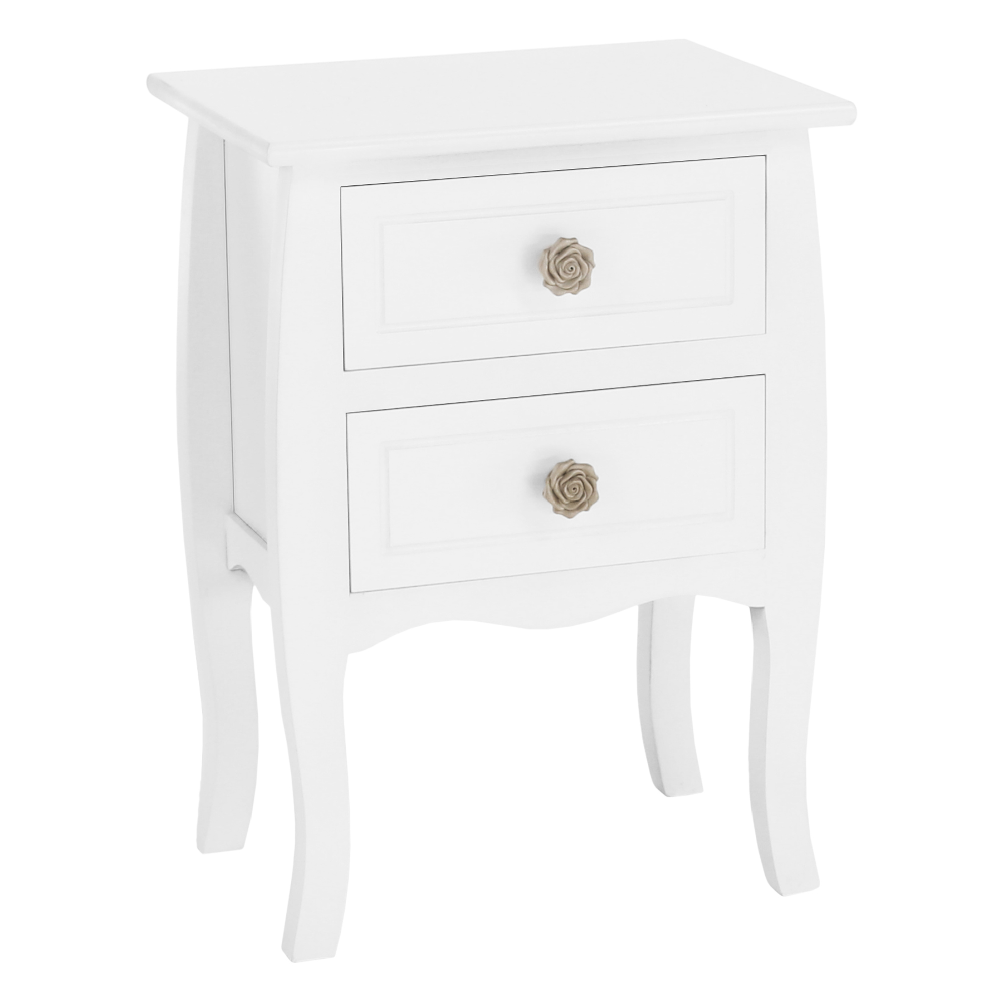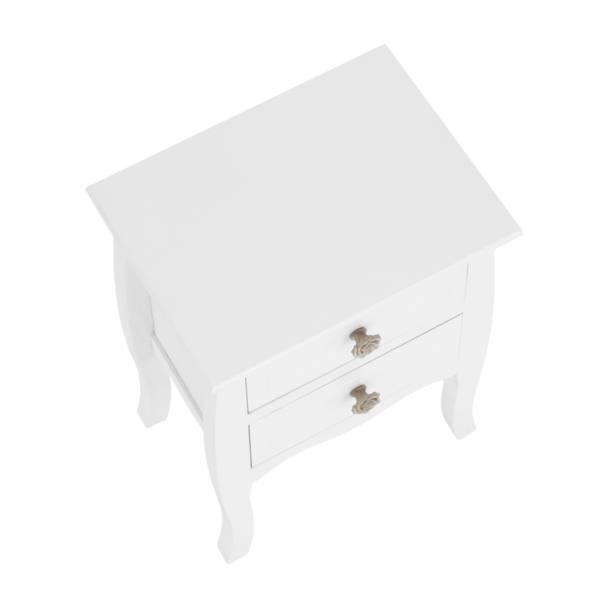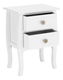 Comodă mai mică care combină stilul baroc decorativ cu un design modern contemporan. Aceasta este potrivită în special pentru gospodăriile care au deja astfel de elemente similare. Comoda are două sertare cu sculpturi decorative, mânere decorative și picioare mai înalte înguste. Versiunea color a comodei este de culoarea alb.