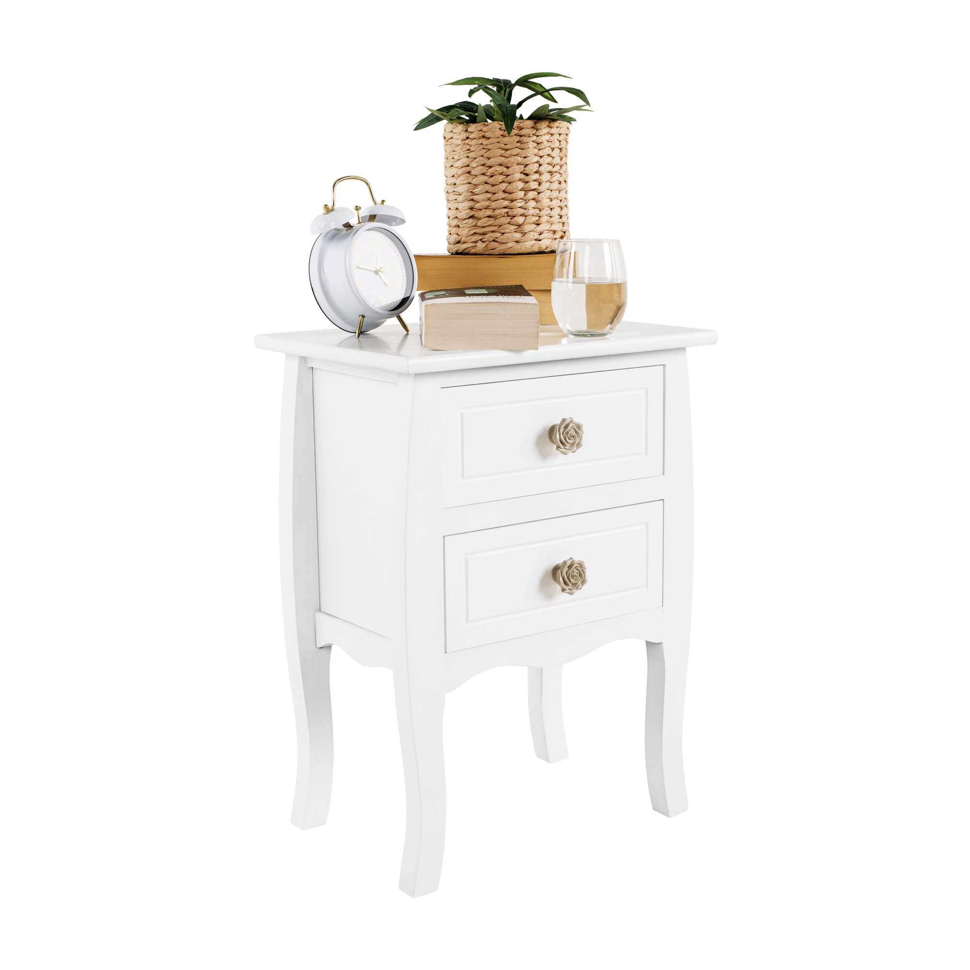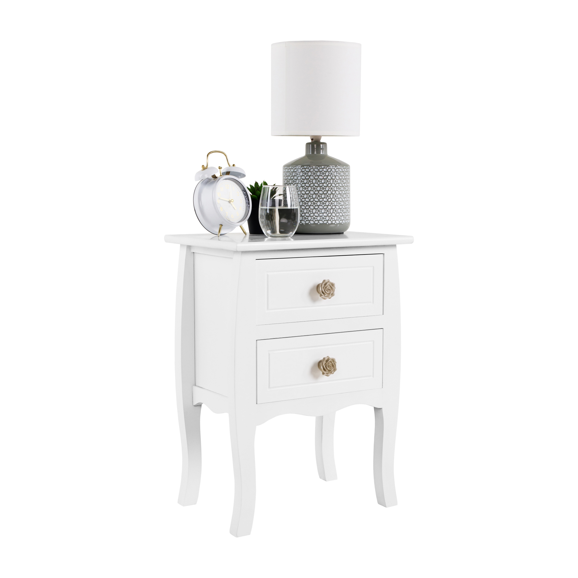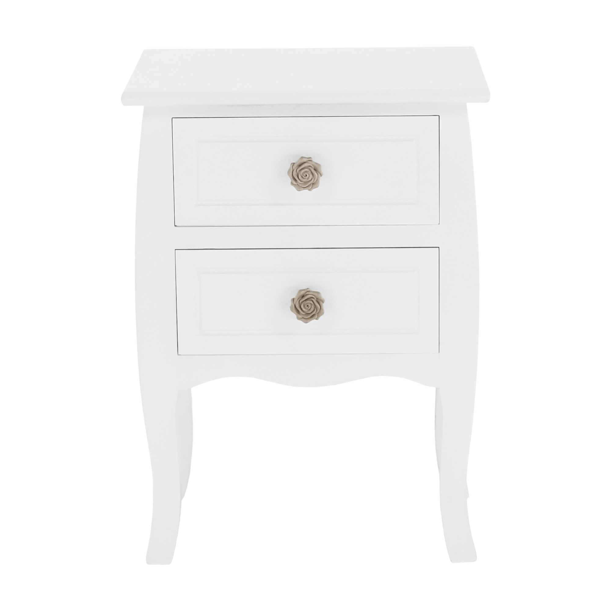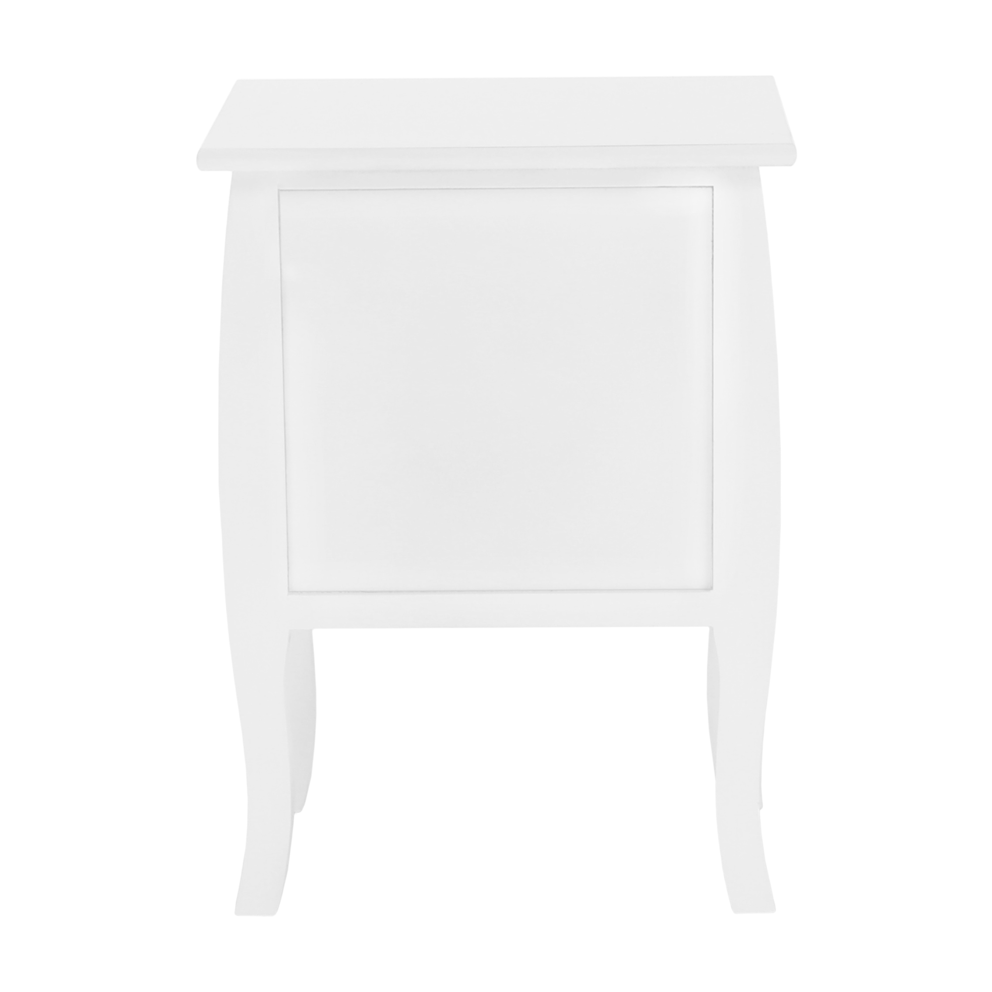 Comodă mai mică care combină stilul baroc decorativ cu un design modern contemporan. Aceasta este potrivită în special pentru gospodăriile care au deja astfel de elemente similare. Comoda are două sertare cu sculpturi decorative, mânere decorative și picioare mai înalte înguste. Versiunea color a comodei este de culoarea alb.