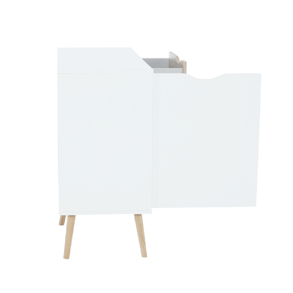 Datorită stilului său retro, această comodă se va potrivi în orice hol, sufragerie sau birou. Are o ușă și două sertare