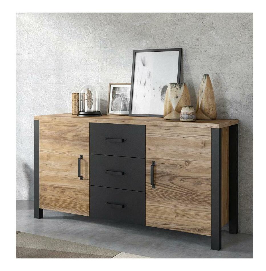 AfișeazăComodă cu uși și rafturi deschise, care oferă suficient spațiu de depozitare. Potrivită pentru living sau birou. Pentru un efect unic recomandăm achiziția iluminatului LED.