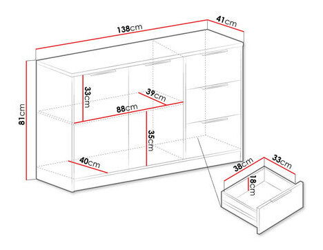 Comodă Pengasa 2D3S (Negru + Stejar viking)