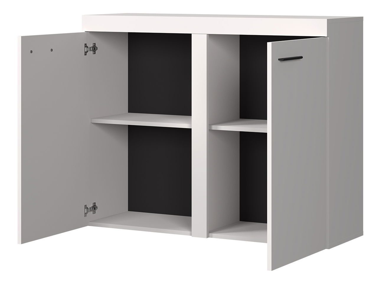 Dispune de două uși cu mânere discrete, care păstrează un aspect curat și ordonat, oferind un spațiu generos pentru depozitare. Finisajele atent lucrate asigură durabilitate și o întreținere ușoară.