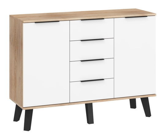 Comodă Shela SVN-02 (Stejar sonoma deschis + Alb lucios)