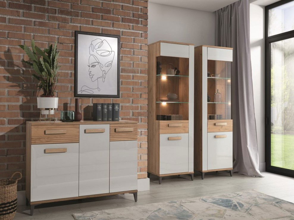 Comodă, care oferă suficient spațiu de depozitare, datorită 3 uși și 1 sertar practic.