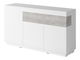 Comodă cu trei uși, cu rafturi și un sertar în partea superioară. Mobilierul Stacey oferă suficient spațiu de depozitare sub formă de rafturi.