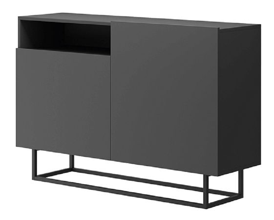 Comoda Spring EK 120 are un design industrial simplu. Oferă spațiu de depozitare sub formă a două dulapuri și spațiu de depozitare deschis. Comoda este plasată pe o structură metalică solidă.